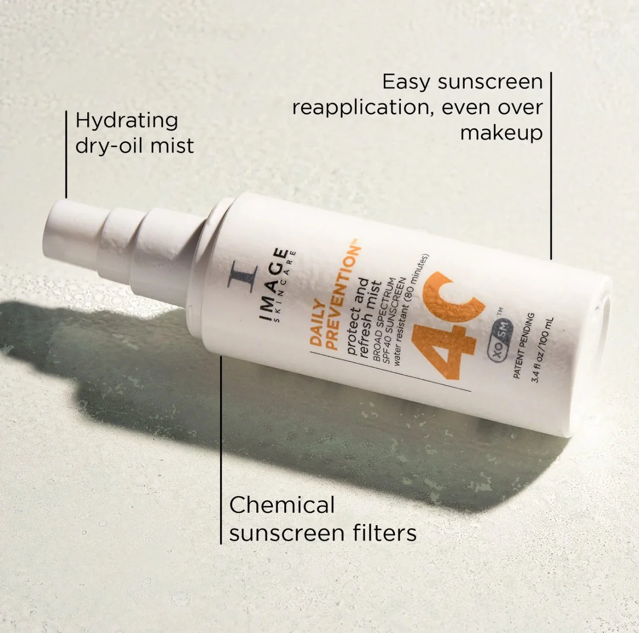 This hydrating dry-oil SPF 40 face mist provides broad-spectrum sun protection while nourishing skin with meadowfoam seed and buriti fruit oils. With a beautiful glow and barely-there feel, it's perfect for sunscreen reapplication over makeup and refreshing UV protection throughout the day. Proprietary, patent-pending XOSM™ Technology enhances the power of antioxidants ectoin, vitamin C and astaxanthin-rich micro-algae to deliver comprehensive nourishment and an added line of defense against premature skin aging.